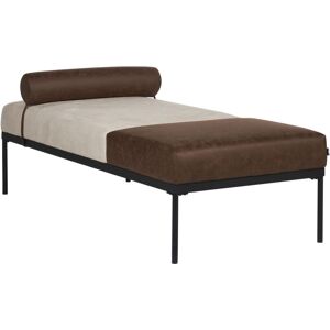 Stylish Double-Colour Chaise Lounge. Transform your living space with this unique chaise lounge. Crafted from a blend of linen-like fabric and faux leather, it effortlessly adds style and a modern touch to any interior. Its iron black sleek legs provide stability. What's more, it comes with an additional bolster cushion for extra comfort, creating a great relaxation spot. Details: Product Type: Chaise Lounge Style: Retro General Color: Beige, Brown, Black Material Type: Fabric Main Material: Faux Leather Additional Material: Iron Filling Material: Foam Material Composition: 100% Polyester Arm Style: Armless Orientation: Symmetrical Pattern: Solid Reclining: No Seat Construction: Elastic Belt Seat Foam Density: 30 kg/m3 Dimensions: Depth: 73 cm Seat Thickness: 13 cm Seat Height: 47 cm Width: 172 cm Height: 47 cm Seating Surface: 182x75 cm Weight: 25 kg Weight Capacity: 240 kg Weight Capacity per Person: 80 kg Offer Includes: 1 x Chaise Lounge, 1 x Scatter Cushion Key Features: Great