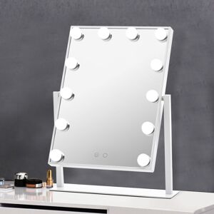 Features: - Elegant Hollywood styled makeup mirror, smooth & polished mirror edge, not to hurt your finger. - Sturdy steel construction, stable to stand and anti-rust for durability. Clear mirror imaging with optic-quality glass. - Emit white colored light, sleeplessly adjust bulbs light brightness and turn lights on/ off by simply press the dimmer - Thick stainless steel / iron base to provide stability on use. Easy to carry and move. - Quick to assemble all bulbs accessories included. Tabletop setting. - Fit for any type of vanity tables, help you to make up, dressing in bedroom, bathroom, backstage. Specification: Material: Stainless Steel/Iron + Glass Input: USB Color: White Bulb Amount: 13PCS Light Color: 3 Color Dimmerable Overall Size: 50*42cm (LxH) Package Included: 1 x Hollywood Make Up Mirror 1 x Bulbs Kit Notice: 1. Please allow slight 1-3cm difference due to manual measurement. 2. Please allow slight color difference due to different monitors and lighting environments