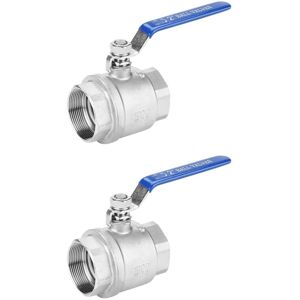Good sealing performance and low fluid resistance. The sealing between the ball and the valve is isolated from the media so that the passing fluid does not cause its erosion. Widely used to control and regulate the flow of fluids such as , and non-flammable gases. The working temperature is -20 to 200 degrees Celsius, the length is 10.5 cm and the hole diameter is 6.1 cm. With simple structure, volume and light weight, convenient for maintenance, and it is also suitable for medium and poor working conditions. The full bore ball has excellent internal thread and material. It is made of selected high-quality materials. It is and solid. Simple to use, with a sturdy blue vinyl insulated handle that rotates 90 degrees for quick opening and closing. The flow direction of the fluid is not limited by the installation direction. Thread: 2 inch DN50 Working Pressure: 1000 psi (WOG) Working Temperature: -20 ~ 200 Celsius Length: 10.5 cm / 4.1 inch Hole Diameter: 6.1 cm / 2.4 inch Color: Silver,