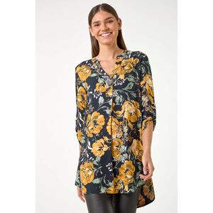 Floral Print VNeck Button Detail Tunic Top by Roman UK Elevate your Autumn wardrobe with our stylish floral print top The vneckline and large metal button at the neckline adds a touch of elegance while the 34 tabbed sleeves offer a trendy look The centre front pleat creates a flowy silhouette in this longline top Perfect for pairing with jeggings and ankle boots for a seasonal ensemble Womens Regular fit True to size 100 Viscose Machine Washable Length Approx 84cm 100 Viscose