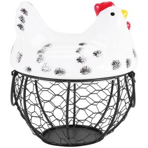 Artificial hen design. This storage container is the perfect combination of lovely and practical, it can be used as a cute hen shaped ornament or a large capacity eggs storage. It is made of high quality iron and ceramic for good durability and long service life. The storage basket is very suitable for storing fruits, eggs, vegetables, etc. The handle is convenien. size: 19x16cm Material:Iron+ceramic colour:White Package Contents: 1 x Egg basket Only the above package content, other products are not included. Note: Light and different displays may cause the color of the item in the picture a little different from the real thing. The measurement allowed error is +/- 1-3cm.
