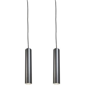 QAZQA Set of 2 Design Pendant Lamps Black - Tuba Small This Tuba small pendant light has a minimalist and sleek design in a cylinder shape. The industrial look fits perfectly with the current trend. Made entirely of aluminum and finished with a beautiful textured paint. A beautiful fabric cable completes the whole. The lamp has a diameter of 5.5 cm and a height of 197 cm. The mounting plate has a diameter of 5.5 cm and a length of 9 cm. The cable has a length of 166.5 cm. You can complete the lamps with two light sources with a GU10 fitting (max. 50W). The lamp is dimmable with an external dimmer (dimmer not included). A truly modern gem for your interior! Now even more affordable as a set of 2! Bulb holder: GU10 . Max 2 x 50 W, 230 V Suitable for: Incandescent, Halogen, Led, Energy saving Connecting voltage: 220V/230V Protection class: IP20 Dimmable, dimmer not included,No, without cord and plug Lightsource: Exclusive The QAZQA Set of 2 Design Pendant Lamps Black - Tuba Small is