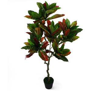 Codiaeum Variegatum (also known as Variegated Croton- Garden Croton and Joseph's Coat) is a plant native to Australia and Indonesia. With its beautiful variegated leaves it is easy to see why this is a popular houseplant. Real Codiaeum Variegatum plants are not only poisonous but are also extremely tricky to grow and maintain indoors making an artificial Codiaeum Variegatum plant the ideal alternative! This artificial plant stands 130cm high x 60cm x 60cm when arranged as shown in the pictures. The width will vary depending on how you arrange the leaves. Plastic pot measures 16cm (d) x 13cm (h) approx. We also supply this same plant in a smaller size if this isn't quite what you are looking for. Our artificial version is extremely realistic and totally safe (real Codiaeum is both poisonous and irritant!) The stems are wired and can be rearranged to suit your requirements. It comes potted in a plastic pot and is ready to display - just arrange the stems as you wish. Leaf
