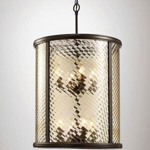 This Diyas Asia eight light ceiling pendant light is finished in oiled bronze and amber glass.ᅠ Suspended from the ceiling on a bronze chain, the square patterned glass in the shade diffuses the light, so it emits a warm glow.ᅠ This light would make a striking addition to any room, in particular a hallway or entrance room. Product code: IL31678 FEATURES: * Finished in oiled bronze * Amber glass shade * Fully height adjustable at the point of installation * LED compatible * Matching items available (please see website) * Earthed * Dimmable SIZE: * Minimum height - 850mm * Maximum height - 1750mm * Diameter - 470mm BULBS: * Takes 8x 60 watt E14 Golf Ball Bulbs - Not included * Also suitable for use with LED bulbs.