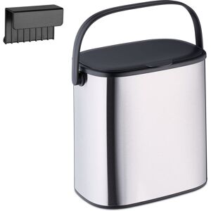 Relaxdays - Hanging Kitchen Waste Bin, 5 l, Rubbish Container, Lid, Plastic, Bathroom Dustbin, 29 x 21.5 x 16.5 cm, Black