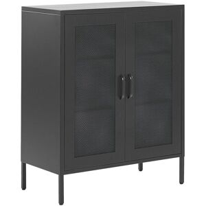 Home Office Highboard Cabinet with Shelves. Add an industrial motif to your room with this sideboard. Made out of steel, the piece doesn't require maintenance often, while also being durable and long-lasting. It features 3 shelves, on which you can place clothes, documents and other various things. Due to grates placed on the doors, the inside of the sideboard is visible, thanks to which it can be also a place to display your souvenirs or other decorative pieces. Details: Product Type: Sideboard Style: Modern General Color: Black Material Type: Metal Main Material: Steel Legs material: Metal Shelves number: 3 Doors Opening: Standard Drawers: No Finish: E-Coating Key Locked: No Number of Doors: 2 Shelves: Yes Dimensions: Depth: 40 cm Width: 80 cm Height: 102 cm Weight: 22 kg Top Weight Capacity: 50 kg Offer Includes: 1 x Sideboard Key Features: Can Serve as a Room Divider, Adjustable Shelves, Timeless Design, Exceptionally Easy Care, Leg Caps for Surface Protection, Additional Storage