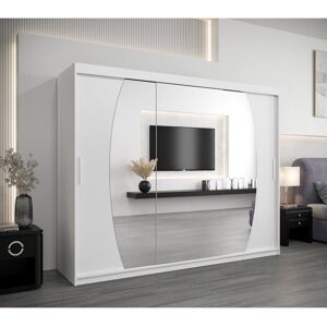 This modern wardrobe system, with its sleek sliding doors, effortlessly blends into any contemporary home . Maximize your space with ample storage for clothes, featuring multiple shelves and a removable clothing rod. Experience the convenience of a dedicated entryway organization solution! Ivy Bronx Size: 200cm H x 250cm W x 62cm D, Finish: White Matt
