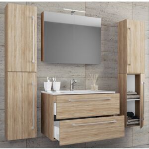 Highlights: Set includes: - 1 x base cabinet with two drawers - 1 x ceramic sink - 1 x mirror cabinet made of durable glass - 2 x tall cabinets The bathroom furniture set consists of a base cabinet with two drawers. A modern washbasin made of solid ceramic and a mirror made of durable glass round off the furniture, making it the perfect focal point in the bathroom. Vanity unit: Dimensions: Approx. 50cm H x 60cm W x 46cm D. - Body made of robust and resistant melamine - Two large drawers with durable metal runners - Handle in aluminum look made of metal - Easy and safe wall mounting Sink: Dimensions: Approx. 17cm H x 60cm W x 46cm D. - Made of robust ceramic Mirror cabinet: Dimensions: Approx. 42cm H x 60cm W x 12cm D. - Mirror made of durable glass - Two revolving doors with a shelf behind them - Body made of robust and resistant melamine - Easy and safe wall mounting 2 tall cabinets: - 2 large doors Aluminum-effect handles made of metal - Body made of robust and resistant melamine - 2 shelves behind the doors for perfect order Dimensions: Approx. 150cm H x 33cm W x 22cm D. The attention to detail makes Ebern Designs bathroom furniture something very special. The washbasin can be combined with other furniture, lighting and accessories from the "Ebern Designs VCB" series. Ebern Designs Furniture Finish: Brown