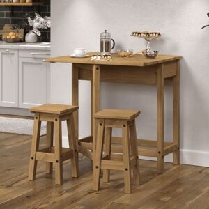 Corona breakfast drop leaf table & 2 stools set; This set is ideal for your kitchen or lounge to create a small compact dining area. The table can used with the leaf down or up to allow for additional diners/more space. The pair of low stools are perfect as they store away safely under the table after use. Size = (W) 80cm (D) 40-72cm (H) 84cm
