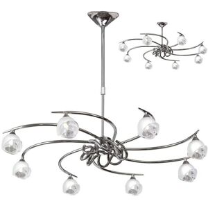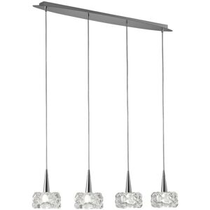Specification Inspired Mantra - Mara - Ceiling Pendant 4 Light E27 Round, Polished Chrome with Ivory White Shade Finish: Polished Chrome IP Rating: IP20 Min Height (cm): 75 Max Height (cm): 260 Diameter (cm): 55 No. of Lights: 4 Lamp Type: E27 Dimmable: Yes - Dimmable Bulbs Required Wattage (max): 20W Weight (kg): 4.2 Bulb Included: No Description This has a traditional feel with a modern twist and can only be described as stunning. The artistic metalwork and bespoke glass sculptures create an impressive combination. The intertwining of the arms creates an impressive centre column adding another unique feature to this design. This range is available in a polished chrome, antique brass or a rich French gold finish. All items can be supplied with an off white or black, rigid pleated fabric shades, consequently creating an abundance of choice and solutions.