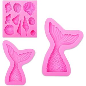 " Specifications: Color: pink. Material: 100% food grade silicone, FDA approved, heat resistant, non-toxic, BPA free, no peculiar smell. Size: Size: Shell mold: 2.8*3.1*0.6 inch, large mermaid tail mold: 4.5*3.1*0.7 inch, small mermaid tail mold: 3 .5*2.7*0.5 inch. Delicate scale details These are so amazingly detailed and the cupcakes will be happier because of this pan!!! The shape pops out easily and the details are easy to see. The shells look real.We think anyone will be hesitant to eat them. Note: You want your fondant, chocolates, soap , clay, hopes and dreams be in the shape of a mermaid tail? Well, you've found the right page! They are strong, the molds never felt like they were going to tear, even with the delicate scale details. However, they are a little superficial as they appear in the photo, perhaps will make the tail/stock connection point quite easy to to break. Make Sure to Free the Mermaid Tails Features: 1.These silicone molds are perfect for making chocolate,