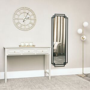 This black art deco wall mirror is a simple, stylish contemporary mirror perfect for lovers of black decor and quirky design. Made of metal, glass and wood, this mirror has a rectangle shape with a multi frame design with a black finish. It can be wall mounted vertically via hooks on the back. Due to its art deco design and black finish, this mirror could easily blend into modern, vintage or mid century style interiors. A great choice for placement in a bedroom, hallway or bathroom space. This mirror is available in other colours and sizes. Metro Lane Finish: Black
