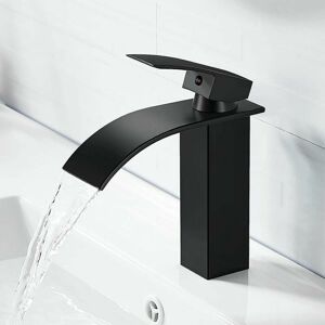 Modern Black Waterfall Basin Faucet, Elegant Design Bathroom Sink Faucet, Brass Bathroom Sink Mixer Tap, Black Waterfall Faucet ✦ EASY INSTALLATION: Comes with a water supply hose G3/8 inch which fits most water systems. Combined with the installation video, you can install it yourself without a plumber, saving time and money! ➤ Note: You may receive a different version due to the upgrade of the installation method! ✦ CASCADE LAVATORY TAP: This black waterfall basin mixer has an ultra-thin waterfall spout , as soft and delicate as naturally flowing water, is comfortable and painless and prevents splashing. Listen to the sounds of natural waterfalls while enjoying your daily cleaning. ✦ HEALTHY: Black bathroom waterfall faucet is made of high purity H59 brass, which is resistant to high pressure and corrosion, and can effectively prevent bacteria from growing. Fashionable matte black multi-layer paint, anti-fingerprint, easy to clean. 100% lead and nickel free to protect your health. ✦