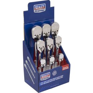 Sealey Premier Pear-Head Ratchet Wrench Set with Flip Reverse 3pc Features: 1/4", 3/8" and 1/2"Sq Drive Chrome Vanadium steel ratchet wrenches. Hardened and tempered with a fully polished mirror finish. Pear-head design with slim style contoured handles. 72-Tooth ratchet action with flip reverse and quick release mechanism. Supplied in an EVA storage tray. Technical Details: • 1/4", 3/8" and 1/2"Sq Drive Chrome Vanadium steel ratchet wrenches. • Hardened and tempered with a fully polished mirror finish. • Pear-head design with slim style contoured handles. • 72-Tooth ratchet action with flip reverse and quick release mechanism. • Lifetime guarantee*. • Model No. AK6672 • Model No. AK6672 Additional Information: • One of a comprehensive range of Premier Hand Tools, suitable for daily professional use. • 1/4", 3/8" and 1/2"Sq Drive Chrome Vanadium steel ratchet wrenches. • Hardened and tempered with a fully polished mirror finish. • Pear-head design with slim style contoured handles. •