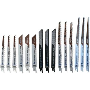 This trade quality professional recip blade sets includes an assortment of 15 sabre saw blades in 5 popular types and allows the cutting of a wide variety of both wood and metal. These high quality blades are manufactured for precision and stability when cutting. Their design and tooth geometry vary with regard to the speed and cutting application which they are intended to perform. Compatible with all major power tool brands including Makita, Dewalt, Bosch, Milwaukee, Hikoki , Metabo and many more Contains the following: 6 x S811H Wood Blades: For coarse wood, free of nails, pruning green wood. Length 150mm (6In) TPI: 10 TPI. 6 x S617K Wood Blades: For coarse wood, free of nails, pruning green wood and for performing curved cuts/plunge cuts. Length 150mm (6In) TPI: 3 TPI. 6 x S1531L Wood Blades: For coarse fast cuts in wood and tree cutting and pruning. Length 240mm (6In) TPI: 3 TPI. 6 x S1411D Wood Blades: For the fast cutting of coarse wood wooden panels, boards, plywood, plastic,