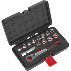 - CHROME VANADIUM STEEL � Hardened and tempered for increased resistance to wear, with a fully polished micro-satin finish. - LOW PROFILE SOCKETS � Projected length of 13mm ideal for use in applications where access is restricted. - GO THROUGH DESIGN � For nuts on extended studs and adjusting screw locknuts. - 12 LOW PROFILE SOCKETS � Ranging from sizes 8-19mm. - INCLUDES GO-THROUGH EXTENSION � Includes extension bar to increase working length of sockets. - 72-TOOTH RATCHET � 19mm flip reverse ratchet wrench with push-through socket release. - SUPPLIED IN STORAGE CASE � For durable, easy storage solutions. - LIFETIME GUARANTEE*.