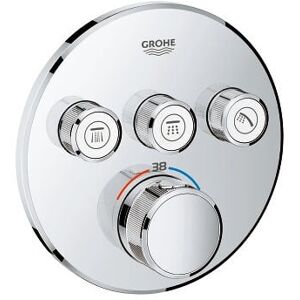 Features of Grohtherm SmartControl Thermostat for concealed installation with 3 valves (29121AL0) : set for final installation for GROHE Rapido SmartBox 35 600/35 604 metal wall escutcheon with GROHE FastFixation (covered escutcheon and shaft sealing, covered fixing), retroactively 6° adjustable GROHE StarLight finish GROHE SmartControl push for ON-OFF, turn for volume adjustment from EcoJoy to full flow exchangeable symbols GROHE TurboStat compact cartridge with wax thermoelement GROHE SafeStop safety button at 38°C ( calibration required ) GROHE SafeStop Plus optional temperature limiter at 43°C or 46°C included built-in non return valve and dirt strainers multiple outlets can be run simultaneously without roughing-in-set flow performance: outlet A = 23 l/min outlet B = 27 l/min outlet C = 23 l/min outlet A + B = 33 l/min outlet A + B + C = 36 l/min Finish : Brushed Hard Graphite To be combined with : GROHE Rapido SmartBox 35600000 Product range : Grohtherm SmartControl Colour :