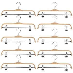 1. Set of premium grade solid wood and stainless steel skirt hangers offer durability and style to ; This closet hangers are perfect for skirts and slacks and even heavy jeans. 2. These trouser hangers feature a unique modern design; a smooth, lacquered wooden bar with chrome metal ends and clips. 3. clips with finger ridges for easy opening and closing as well as interior vinyl tips for grip and cushion against ugly marks. Easily adjust clothes hangers clip widths for different sizes. 4. 360 degree swivel stainless steel hook makes hanging and accessing clothes easy! Trouser hangers stainless steel hook is finished in chrome for rust-resistant shine! 5. Jean hangers flat, slim profile take up less space thus de- closets. Colour: wood color+silver Material: wood+stainless steel Size: 33 x 12.5cm Package Contents: 10 x Hangers Only the above package content, other products are not included. Note: Light and different displays may cause the color of the item in the picture a little