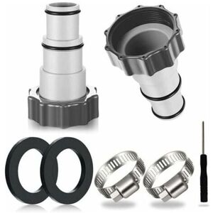 【Pool Hose Adapter Set】2 adapters, enough for daily use or as a spare. 2 hose clamps, 2 gel pads and 1 screwdriver for a more secure connection. 【High Quality Pool Hose Adapter】Made of corrosion-resistant plastic, it is sturdy and durable. The rubber ring fits snugly with the 32mm hose and creates a tight gap to prevent water leakage, ideal for pool connection sets. 【Easy to Install Pool Hose Adapter】The pool adapter allows you to connect a 32mm hose to a piston valve or filter pump. The small end connects to a 32mm hose. Threaded end connects to a 38mm piston valve or filter pump. Just screw it on. No need to buy additional hoses and avoid extra costs. 【Sink Adapter Size】Sink adapter for all 4000, 2500, 2000 and 1500 gallon/hour filter pumps with threaded connections. (Note: Please check the picture carefully for exact dimensions!) 【Widely Used【For Adapters【Pump hose adapters are suitable for hoses of filter systems, submersible pumps, pool pumps, filter pumps, sand filter systems or