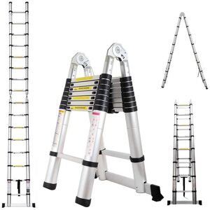 Product Description 【Aluminum Telescoping Ladder】 Constructed out of corrosion-resistant, high-quality aluminum alloy, this ladder is rust-proof and is built to withstand indoor and outdoor elements, and its plastic parts is reinforced with nylon fibre to improves load capacity, stability, aging resistance. 【Locking Mechanism】Our telescoping ladder has intelligent locking mechanism in each rung(The black button under the rung,you can also adjust the height of the ladder as you like ),each step falls slowly and smoothly. 【Great Stability】Fully safe load bearing 335 pounds, suitable for most people, independent button adjustment of each section can effectively prevent pinching hands when contracted 【Portable and Space Saving】This foldable ladder is lightweight and easy to carry.Such folding ladders are convenient and space-saving to store. Our retractable ladder can be stored under the bed, behind the cabinet or behind the door and so on. 【HEAVY DUTY telescoping ladder】This 16.4 ft