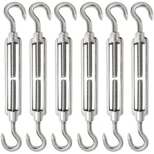 Type: The turnbuckle with hole and hook allows you to tighten a taut rope and regulate the elastic effect. Material: The turnbuckle hooks are made of 304 stainless steel for greater strength, durability, waterproof, rust and corrosion resistance. Use: Suitable for tightening the rope and regulating the elastic effect; Perfect for steel wire, antennas, clotheslines, chains and other ropes. Use: Perfect for indoor and outdoor use. Easy to use: A simple twist to increase/reduce tension. Package Included: 10 x M6 Hook Cable Tensioner