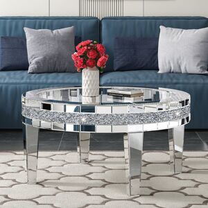 A round coffee table is a stylish and modern piece of furniture that can add a touch of glamour to any room. Clear reflective silver mirror surface visually magnifies the space, adding dimension to spaces. The 4 legs glass coffee table also features a crushed diamond inlay, adding a touch of luxury and elegance to the piece. With clean lines and a unique design, this brilliant mirrored silver coffee table showcases a distinctive style. Blue Elephant