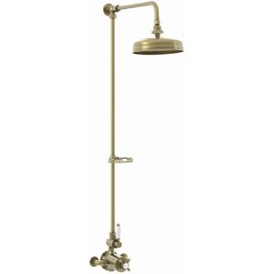 If you are after a more traditional look and feel for your bathroom or ensuite, why not complement the look with this beautiful Downton shower set with 18mm rigid riser rail and twin thermostatic valve? The twin thermostatic shower valve is anti-scald allowing to keep you and your family safe. The valve will automatically shut down the shower if the cold water supply fails. This valve is fitted with two individual controls, one to select the showering temperature and one to control the water flow. DOWNTON THERMOSTATIC TWIN SHOWER MIXER VALVE DEATILS Single cast body, high-grade Brass is featured in this premium quality valve. It is designed in a way that if maintenance is required whole valve does not require re-plumbing. Built-in anti-scald device means no more fluctuating water temperatures while showering. Distance between connections: 147-153mm For more dimensions please see technical drawing RIGID RISER RAIL DETAILS Large 200mm shower head for a sumptuous soak, with riser rail