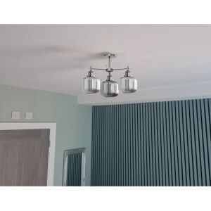 This 3-light crystal ceiling lamp features a metal frame with geometric-cut crystal accents, blending modern minimalism with art deco elegance - perfect for luxury apartments, hotels, or boutique spaces. Fairmont Park Fixture Finish: Chrome, Shade Colour: Silver