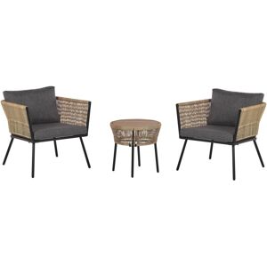 2-Seater Patio Set. Enjoy beautiful moments while sitting in these comfortable armchairs. Supported by the steel frame, they offer both stability and durability. The detachable pillows are not only comfy but also UV-resistant and because of the zip, cleaning shouldn’t be an issue. The set is complemented by a coffee table, which is a practical and stylish piece of furniture. Its table top was crafted from artificial wood that adds a natural and warm accent to the whole. Details: Product Type: Bistro Set Style: Boho General Color: Grey, Black Shade: Light Grey Material Type: PE Rattan Main Material: PE Rattan Additional Material: Fabric Top Material: Rattan Material Composition: 100% Polyester Finish: Powder Coated Seat Foam Density: 20 kg/m3 Seats Up To: 2 People Dimensions: Chair Dimensions: 70x68x72 cm Coffee Table Dimensions: 50x50x50 Seat Thickness: 10 cm Seat Height: 35 cm Overall Dimensions: 68x70x72 Weight: 27 kg Chair Weight Capacity: 120 kg Table Weight Capacity: 35 kg Offer