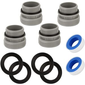 Hose Conversion Adapter Kit --- The replacement Intex short connector kit connects a 40mm hose to a standard 1 1/4" or 1 1/2" filter port to connect Intex brand above ground pools to non-Intex brand above ground pools. Wide Range of Applications --- The drain hose connector is compatible with Intex/Coleman pools and is used with most Intex soft-side pool filtration systems as well as Hayward skimmer pumps. HIGH QUALITY --- Our replacement Hayward pump sand filter hose adapter is made of high-quality, durable materials to reduce the risk of leaks. WHAT YOU GET --- Our short connector kit contains 4 * hose connectors, 4 * washers and 2 * Teflon tarps. The extension is threaded on both ends to connect the Hayward pump to the Intex/Coleman pool hose. 4560 Pool Hose Adapter, Intex Pool Filter Pump Conversion Kit, Hose Adapter for Intex Above Ground Pool, 40mm to 1 1/2 Inch Conversion Kit. Specifications and Materials: Material: ABS plastic, TPE material. Dimensions 4.7 x 2.3 x 5 inches
