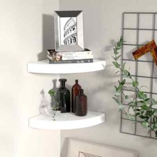 This set of 2 stylish corner shelves is ideal for displaying your favourite books, decoratives, photos, awards, etc. This display shelf, made of quality honeycomb MDF and strong metal, is stable and durable. With an invisible mounting system, the wall shelf is easy to install and serves as the perfect place to store the items such as awards, books, collectables, ornaments, etc. This floating shelf suits any decor and turns an empty wall into a designer feature! Colour: High gloss white Material: Honeycomb MDF, metal Dimensions: 25 x 25 x 3.8 cm (L x W x H) Maximum load capacity (each): 5 kg Invisible mounting system Assembly required: Yes Delivery contains: 2 x Corner Shelf SKU: 323887 EU responsible party Haba Trading B.V. Mary Kingsleystraat 1 5928SK Venlo The Netherlands Compliance-safety@vidaxl.com
