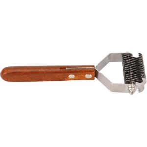 Stainless Steel Material: Constructed from high grade stainless steel, our dematting brush is sturdy and enduring for long term use, resisting wear and ensuring longevity. Double Sided Design: Featuring a dual sided design, one side tackles short hair while the other effortlessly removes tangles, allowing for smooth and manageable hair. Pet Friendly Grooming Tool: Specifically designed for pets, this brush effectively eliminates loose hair and reduces shedding, keeping your furry friends looking neat and well groomed. Comfortable Handle: The brush is equipped with a comfortable, anti slip handle, providing a secure grip during grooming sessions for maximum safety and reliability. Practical and Convenient: This shedding dog comb can be tailored to suit different hair types, making it excellent for both dogs and cats, no matter their grooming needs.