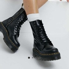 Picking up on the 1980s Rewind theme, the Quad Retro Jadon boot boldly perches a classic upper atop a thick, towering sole which sandwiches PVC and EVA to vertigo-inducing new heights. The Jadon deftly mimics elements of military with rave and utilitarian with clubbing. To finish the look, theres an inside zip, metallic eyelets and our famous yellow stitching. 8-Eyelet Boot Inside Zipper Quad Retro, extra thick sole Dr. Martens air-cushioned sole, oil and fat-resistant, good abrasion and slip resistance Goodyear welted product, the upper and sole are heat-sealed and sewn together