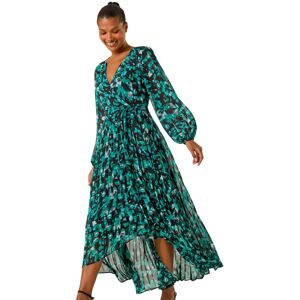 Abstract Print Wrap Midi Dress from Roman. This abstract print chiffon dress is bound to become a wardrobe staple this season. With its neutral colour palette, 3/4 length sheer sleeves with ruched detail at the cuffs this dress has a feminine v neckline. A flattering hanky hem and delicate button detail at the bust finish it off beautifully. Add heels and a leather jacket for after work drinks!