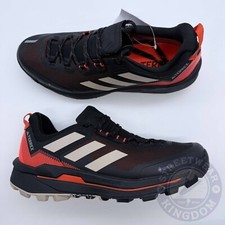 Designed for speed and agility on and off the trail, the Adidas Terrex Skychaser hiking shoes are perfect for fast-paced hikes and challenging summit scrambles. Engineered with ultralight Lightstrike cushioning, these shoes deliver a responsive and nimble feel, ideal for dynamic footwork. The GORE-TEX membrane ensures your feet stay dry and comfortable by repelling water while maintaining breathability and temperature regulation. A reinforced midsole plate enhances stability, allowing you to tackle rocky terrain with confidence, while abrasion-resistant mesh provides long-lasting durability. For superior traction on boulder fields and alpine scrambles, the shoes feature a Stealth Hf climbing rubber zone, ensuring optimal grip and performance. Adidas Terrex Skychaser Tech Mid GTX Features: Asymmetric arch-support lacing system Abrasion-resistant mesh upper with seamless overlays Moulded sockliner and GORE-TEX membrane Lightstrike cushioning and bio-based Pebax midsole plate Water-repellent finish Stealth Hf rubber outsole Upper contains a minimum of 50% recycled content Product colour: Core Black / Wonder Beige / Semi Impact Orange Product code: ID3426