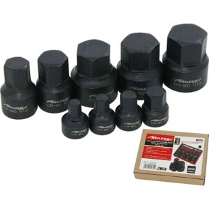 Neilsen 9pc Low Profile Stubby Short Impact Hex Bit Socket Set 6mm - 19mm This set ideal for use in any application where access is restricted. Heavy-duty bits manufactured from chrome molybdenum with a one-piece construction for strength and durability and a black phosphate finish for improved corrosion resistance. Suitable for use with air/electric impact guns. Contents: 4 x 1/4"D socket bitx x 19mm long: 6,7,8,10mm. 5 x 3/8"D socket bits x 29.4mm long: 12, 14, 17, 18, 19mm. Fit in XPE foam tray convenient for storage.