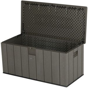 Need a more convenient place to store items around your yard? Lifetime’s 570L Deck Box is the perfect way to expand your storage and get better access to items you use regularly around your yard. Whether you have gardening tools, lawn equipment, yard games, or even outdoor seat cushions, the Deck Box makes them easy to store and find when needed. The Rough Cut Series features a wood grain texture and rough-cut finish that provides the natural look and feel of wood without the maintenance of painting or staining. It is durable, UV-protected, and weather resistant to ensure your belongings have years of protection. The lid is lockable (lock not included) to provide even greater security and has a controlled spring-hinge for easy opening and closing. It has molded side handles for easy transport making it easy to move around your yard or patio and it is even sturdy enough to be used as a bench. The Lifetime Deck Box blends durability, convenience and style to create a versatile storage solution. Lifetime