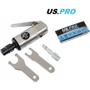 Professional Tools 1 Year Warranty Included 5"" (125mm) Air angle grinder. RPM: 10,000 (free speed) Average Air Consumption: 6 CFM Air Pressure: 90 PSI Bore: 22.2mm 1/4"" BSP CE Angle: 90deg Overall Length: 228mm Weight: 1.9Kgs Includes a 5"" x 1/2"" x 7/8"" grinding disc Please Check our Other Air Tools