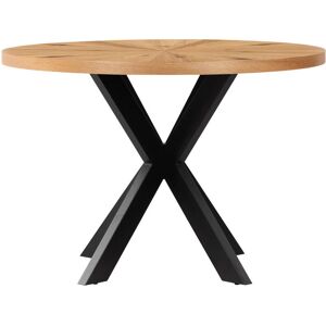 The 110cm Oak Round Dining Table combines timeless design with modern craftsmanship, creating an inviting centerpiece for smaller dining spaces. Expertly crafted from high-quality oak and oak veneer, the table features a unique and eye-catching sunburst pattern on the top, highlighted by a protective wax finish that enhances the natural oak grain and adds a warm sheen. Supported by distinctive black powder-coated starburst metal legs, this table is both stylish and sturdy. With its compact 110cm diameter, it comfortably seats up to 4 people, making it ideal for cozy family meals or intimate gatherings. George Oliver
