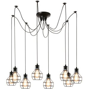 The Borough Wharf Seger 8-Way Spider Light Chandelier combines vintage-industrial style with modern functionality. Featuring eight adjustable cords and striking wire cage shades, this pendant kit allows for customizable lighting with E27 sockets compatible with vintage Edison or LED bulbs. Its flexible design is perfect for high ceilings, lofts, and kitchens, offering a dramatic or expansive aesthetic. Easy to install, the Seger chandelier transforms any space with its rugged metal construction and geometric flair, adding an appealing industrial charm to your decor. Borough Wharf Finish: Brushed Copper