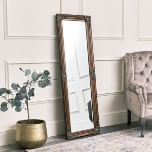 This tall ornate gold wall mirror 47cm x 142cm is a striking, full-length mirror, ideal for lovers of vintage style and ornate design. Made of wood, resin, and glass, this mirror has a tall, slim rectangular shape and comes with French-inspired ornate detailing around the frame. This mirror has an antique gold finish and can be wall-mounted vertically and horizontally. A beautiful mirror that would add a touch of vintage glamour to any bedroom, bathroom, hallway, or living room space. Due to its vintage design and antique gold finish, this mirror is best suited to vintage, shabby elegance, or eclectic style interior spaces. This mirror is also available in silver, champagne, cream, copper, white, grey and pink, Astoria Grand