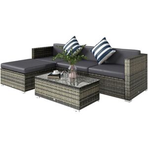 Comfort and relaxation comes in pairs, with this Outsunny five-piece rattan set. The acacia wood-top coffee table takes centre stage: a beautiful touch, with a varnish finish for light protection against marks and dirt. With two chairs and two footstools, there's room for you to sit and relax with company - complete with padded cushions for comfort.