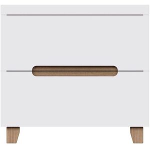 The Mcfadden 2 Drawer Bedside is a stunning representation of modern elegance, designed to enhance the beauty and functionality of your bedroom. Featuring a pristine white high gloss finish, this bedside table embodies contemporary sophistication. Its minimalist design is tastefully accented with subtle contrasting oak-effect details on the legs and recessed drawer handles, creating a perfect balance between modern chic and warm natural tones. This bedside table isn't just about aesthetics; it offers practicality too. The two spacious drawers provide ample storage space, keeping your essentials organized and within easy reach. Constructed from durable laminated MDF, it's built to withstand the rigors of daily use while maintaining its sleek appearance. Assembling the Mcfadden Bedside is incredibly straightforward. The innovative fast click construction allows each panel to effortlessly click together using a patented hook and groove system, significantly reducing assembly time by 50% compared to standard flat-pack furniture. This method not only simplifies the process but also enhances the overall strength and stability of the bedside table. Fjørde & Co