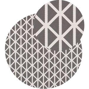 Outdoor Rug with Geometric Pattern. Refresh your balcony, terrace or garden with this elegant round rug in dark shades. The geometric pattern adds a subtle decorative accent, effortlessly blending with a variety of outdoor furniture styles. Crafted from durable synthetic material, it’s low-maintenance and suitable for indoor or outdoor use. Its light weight and flexible shape make it easy to reposition or store during the off-season. Details: Product Type: Outdoor Area Rug Style: Modern General Color: Black, Grey Material Type: Synthetic Material Main Material: Polypropylene Additional Material: Fabric Backing Material: Synthetic Rubber Material Composition: 100% Polypropylene Shape: Round Anti-Slip Bottom: Yes GSM: 600 g/m2 Pattern: Geometric Pattern Suitable for Underfloor Heating: No Weaving: Jacquard Woven Dimensions: Pile Height: 0.6 cm Width: 120 cm Length: 120 cm Weight: 1 kg Offer Includes: 1 x Rug Key Features: Reduced Slipping Risk Thanks to the Non-Slip Bottom Layer, Modern