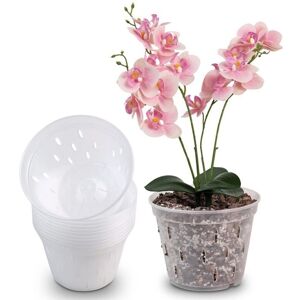 parameter: material: plastic Size: 5 inch 7 inch Individual weight: 28g + tray 45g 5pcs planting pots: 142g Package size 14 x 14 x 13cm. 5pcs planting pots + tray: 222g Package size: 14x14x15cm Features: The flower pots are perfect for orchids. Orchid pots with holes can meet the different needs of orchid growers. [Appropriate size] --- 5 inch medium size, suitable for growing various orchids, this size is suitable for orchid mixes. [Unique features] --- This is a beautiful orchid flower pot. Since the holes around the pot are not only on the sides, this clear orchid pot allows light and air to filter through, aerating the orchid's needs and is designed to facilitate the irrigation of the plant. In addition, it also comes with a tray that will not stain the floor and can keep furniture and floor clean. [HIGH QUALITY AND DURABLE MATERIAL] --- Made of high quality plastic material, this orchid pot is very light and sturdy, and retains its shape well whether empty or full. Thanks to