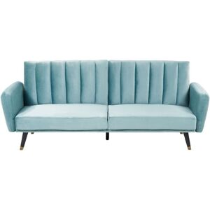 Tufted Upholstered 3 Seater Sofa. Make the most of your living space by incorporating into a room this tufted sofa. It offers not only a seat for up to three, but with the adjustable back and an easy-to-use click-clack mechanism it smoothly turns into a comfortable bed for an occasional sleepover. The sofa is fitted with two under seat storage areas, so you can easily put away blankets or pillows. The contemporarily styled straight-lined form, with track arms and solid wooden legs, brings a versatile look that easily suits any interior decor, from minimalist through Scandinavian to even glam. Details: Product Type: 3 Seater Sofa Style: Traditional General Color: Blue, Brown Shade: Dark Blue Material Type: Fabric Main Material: Fabric Additional Material: Pine Wood Filling Material: Foam Material Composition: 100% Polyester Arm Style: Track Leg Caps/ Pads: Yes Reclining: Yes Removable Cushion Covers: No Seat Construction: Sinuous Springs Seat Foam Density: 50 kg/m3 Seats Up To: 3