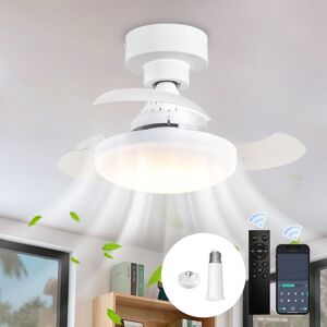 Size of fan light —— Lighting fixture diameter: 50 cm / 19.7 inches, height: 21 cm / 8.2 inches. Ceiling canopy diameter: 15 cm / 5.9 inches, height: 6.5 cm / 2.6 inches. The industrial design with a rustic matte black lacquered finish will complement the aesthetic of your modern farmhouse. Great air circulation —— 6 speed settings to tailor the airflow to your preference. Fan operates quietly and efficiently, whether it's a gentle breeze for ambiance or a strong gust to cool down. In winter, switch the direction of the fan so that the warm air gathered near the ceiling is evenly distributed and increase your comfort. Space saving —— Lighting fan combo makes it feel like the rooms has a higher ceiling, a great replacement for large bulky ceiling fan. The 4* E27 lamps contribute to a warm and inviting atmosphere, enhancing the overall aesthetic appeal of your space. Convenient APP / Remote control —— Adjust the fan speed and lighting, set a timer (1/2/4/8h) all from the comfort of your