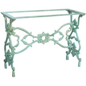 Very stable and sturdy cast iron table base with dimensions length 71 cm, depth 43 cm, height 71 cm in natural finish completely handmade. It can also be used as a console table, and is ideal for very heavy tops such as stone, marble, etc... As these are handcrafted finishes, the finish may not correspond exactly to the photographs. All measurements refer to the maximum size of the article.
