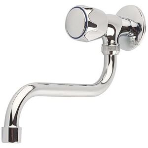 Wall mounted bath washbasin/sink mixer tap fitted with conventional screw down valve mechanisms. Perfect for all kitchens and bathrooms. Specifications: - Material: chrome-plated brass; - Double round headed levers; - Ceramic cartridge 1/4 turn; - Wall mounted; - Rotatable 25cm spout; - Coming with fittings and gaskets as a set.