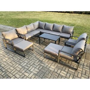 This deluxe aluminium outdoor sofa set is a great addition to your patio or garden, made of high quality Alloy aluminium and powder coating for sturdiness and structural durability. Set Dimensions: • 1 x Left Sofa with single armrest: 125W x 70D x 78H cm • 1 x Right Sofa with single armrest: 125W x 70D x 78H cm • 1 x Corner Sofa:70L x 70W x 78H cm • 1 x Armless Sofa Size: 60L x 70W x 78H CM • 2 x Chair Size: 74L x 70W x 78H cm • 1 x Big footstool :60L x 60W x 35H cm • 2 x Fully Assembled Stool Size: 40L x 40W x 36H CM • 1 x Oblong Coffee Table:97L x 52W x 51H Dark grey powder coated with dark grey fabric .Color may vary little due to light or monitor .we are unable to return the item due to color problem .please contact us before purchase if you have requirement on color saturation. Items Comes Flat Pack And Easy Assemble, Alloy Aluminium Frame With Powder Coating To Prevent The Rust This Set Was Completely Made By Handmade, Aluminum Table Top Without Glass .9 CM Thick Seat Cushion